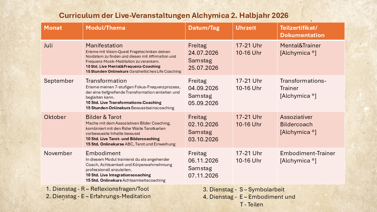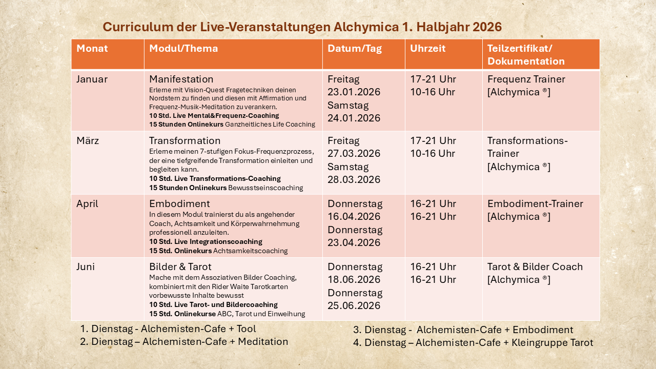 Bist du bereit für eine Ausbildung, die uralte Gesetze und alchemistische Metaphern mit moderner Psychologie und neuesten Erkenntnissen aus der Bewusstseinsforschung verbindet?